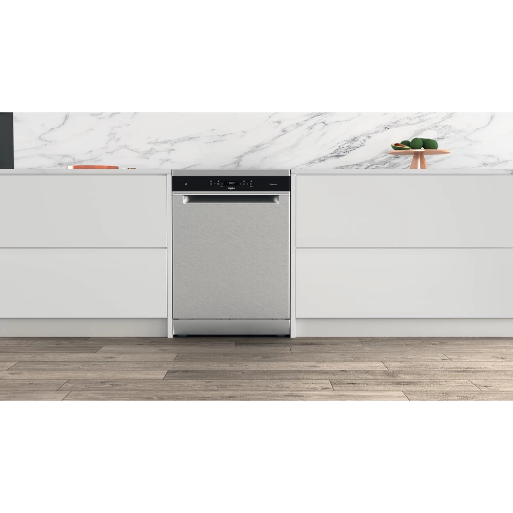 Brand: WhirlpoolDishwasher Capacity: 14 DishesPrograms: Daily 50,Eco Program, Eco,Glass, Pre-Wash, Intensive 65°, Self-Clean, Silent, Availability of short program, Sanitizing Rapid, Sensor PLP2, Start delay time max. (h)24Cutlery Tray: YesEnergy Label: DEnergy Consumption: 85 kwh per 100 cyclesWater Consumption: 9.5LNoise Level: 43dBAdditional Features: “Rinse aid” indicator light, 6TH SENSE TECHNOLOGYInstallation Type: Free-StandingDishwasher Size: 60cmDimensions: Depth 59cm, Height 85 cm, Width 59.8cmWarranty: Parts 2 years & Labour 2 years
