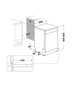 Brand: WhirlpoolDishwasher Capacity: 15 DishesPrograms: Half Load, Silent, Glass, Fast, Prewashing, Sanitization, Intensive 65°, Self CleanDelay Start: YesAdditional Features: Adjustable upper basket, Cuttlery Tray, Rinse aid light indicator, Salt light indicatorEnergy Label: CEnergy Consumption: 76 kwh per 100 cyclesWater Consumption: 9.5 litersNoise Level: 43dBDishwasher Size: 60cmInstallation Type: Free-StandingDimensions: (WxHx) 600 x 850 x 590 mmWarranty: Parts 2 years & Labour 2 years
