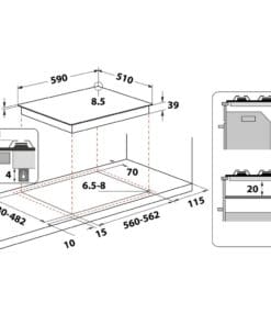Brand: WhirlpoolCooking zone power: 3500W Total PowerNumber of cooking zones: 4 Gas BurnerIgnition: KnobCook top type: GasFunctions: Eco Booster FunctionDimensions: Depth 51cm, Width 59cmWarranty: Parts 2 years & Labour 2 years