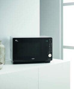 Whirlpool freestanding microwave oven featuring Crisp function, steam cooking, and grill. The door, in a striking black hue, turns transparent during cooking, allowing for convenient food monitoring and ensuring complete visibility of your dishes. It brings an appealing aesthetic and a touch of elegance to any kitchen. Cleaning is made effortless with the Autoclean function.
