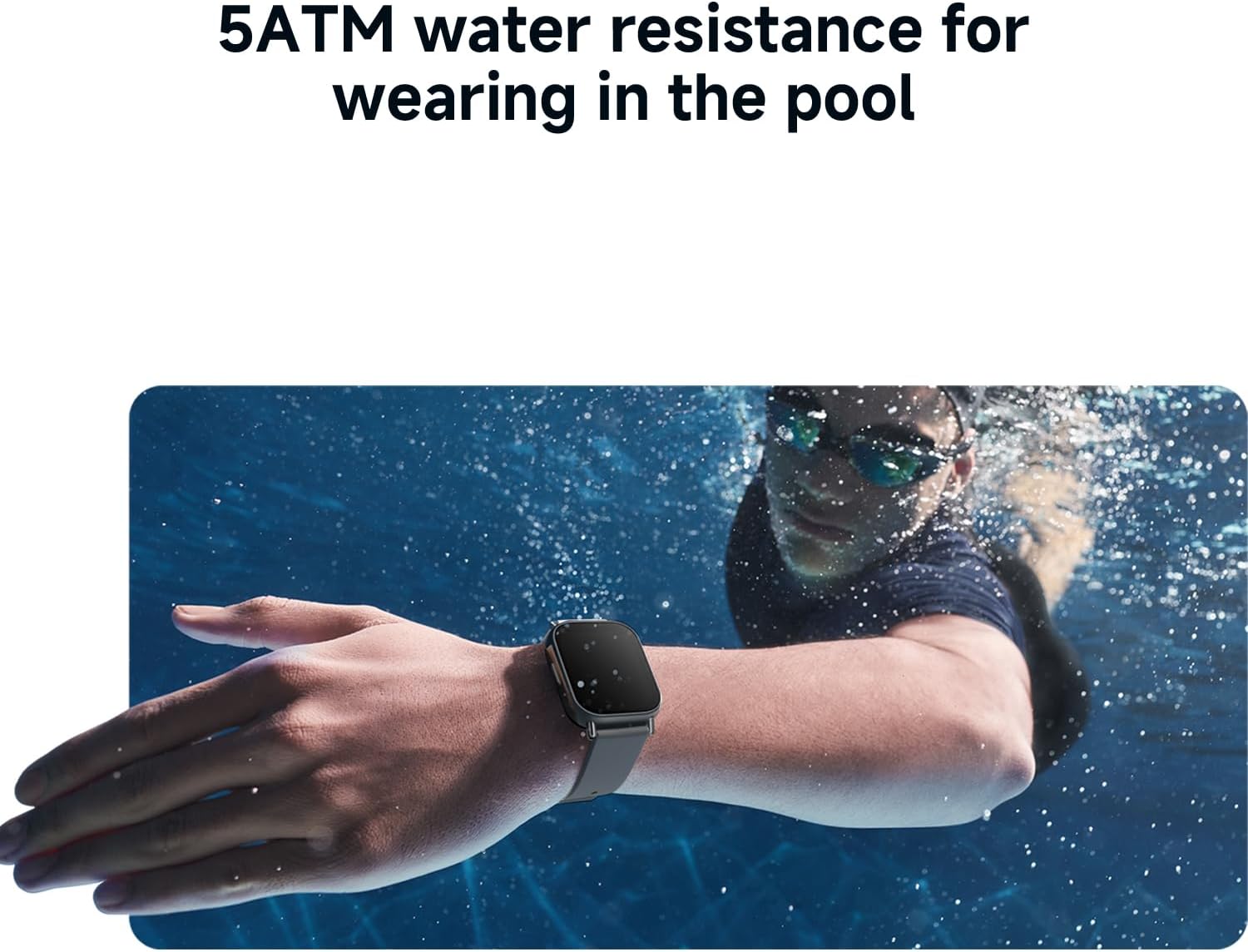 5ATM* water resistance makes the watch suitable for swimming in the pool, so you can have fun in the water.
